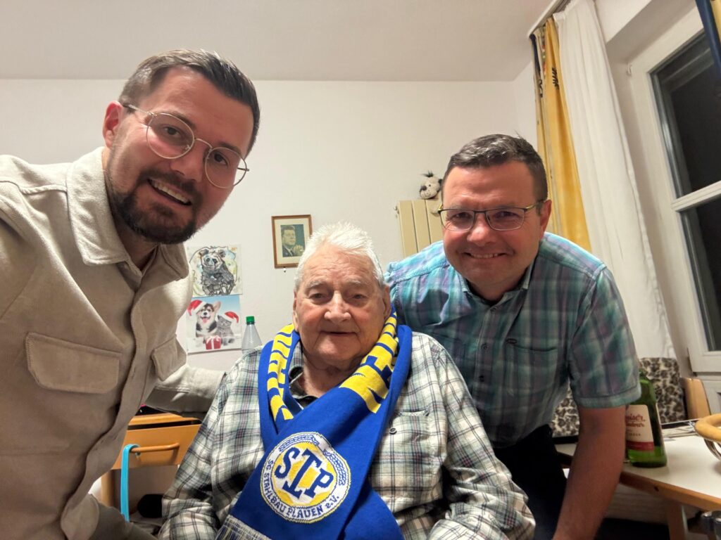 Anlässlich seines 92 Geburtstages besuchten unsere beiden Vorstandsmitglieder André Höfer und Stepan Bergmann unser Stahlbau Urgestein Hermann Knüpfer im Diakonischen Werk am Komturhof.